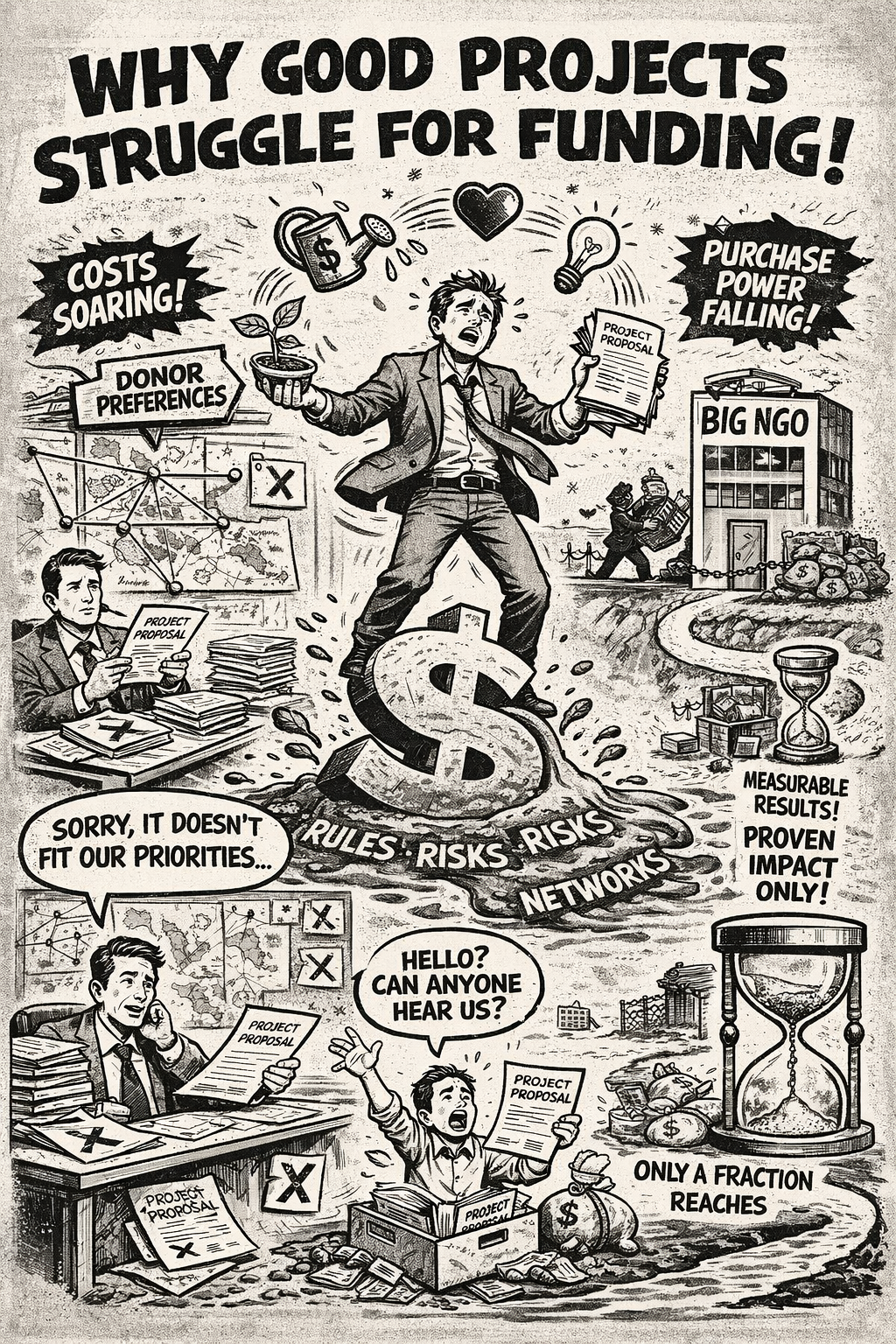 These dynamics suggest that the funding ecosystem does not necessarily reward the intrinsic quality of projects. Instead, it rewards alignment, clarity, measurability, and perceived reliability. This does not mean that donors are acting in bad faith; rather, they are responding to their own constraints and accountability structures. The system, in many ways, is functioning as designed. However, the consequences are significant, as innovative, context-specific, and potentially transformative projects often remain unfunded, while safer, more conventional interventions dominate.If we are serious about tackling poverty, inequality, and climate injustice, we must start by rethinking how funding itself operates. It is not enough to design good projects, but one must also learn to translate them into the language of donors without diluting their essence. This requires strategic proposal architecture, effective communication, and relationship-building. For donors, the challenge is more profound as it involves rethinking risk, expanding definitions of impact, and creating funding mechanisms that are flexible, inclusive, and long-term. Without such shifts, the sector will continue to produce good ideas that never see the light of day, not because they are unworthy, but because they do not fit the system that is meant to support them.