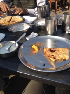 open kitchen, and you are not going to find the servers in neat uniforms. However if you are looking for some fresh and hot food desi style, this place offers good value for money. I have had numerous breakfasts and have tried them for a few dinners too. The dishes that I always stick to here are Aaloo Paranthas & Curd for breakfast, and Butter Paneer & Naan for dinner. Their stuffed bread offerings are good and mouth watering. Breakfast for four would cost around Rs 500.