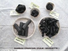 Variety of Bamboo Charcoal: There are many kinds of bamboo charcoal. In line with their origin, bamboo charcoal can be divided into two parts: raw bamboo charcoal and charcoal stick of chips. Raw bamboo charcoal is made of small sized bamboo, old bamboo, and bamboo tops, roots, which are not fit for making other bamboo products. Charcoal stick of chips is made of residue from bamboo processing industries. In the process of making different kinds of industrialized products, there will be residue, which should be broken in chips, dried, and pressed into sticks before carbonization.
